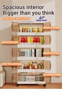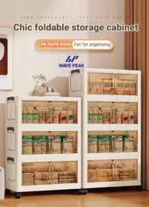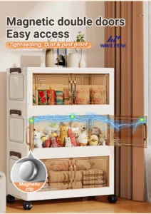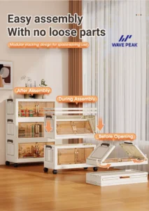 【HARGA LELONG】DJHOME 80cm (5 Layers) 2 Doors Multipurpose Foldable Stackable Storage Cabinet Box With Rollers Rak Kabinet dengan Roda